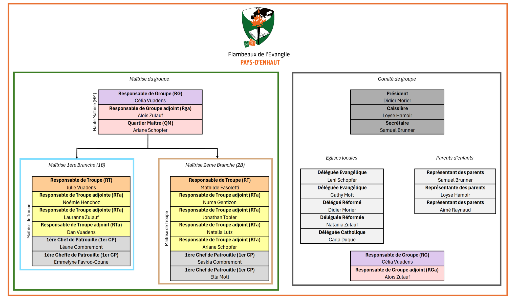 Organigramme interne des Flambeaux de l'Evangile du Pays-d'Enhaut